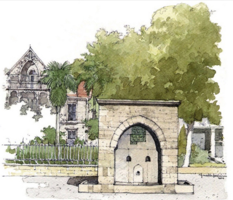 Kadıköy Belediyesi'nin "Kadıköy'ün Aynaları, Kadıköy'ün Çeşmeleri" kitabındaki Çatalçeşme Çeşmesi tablosu.