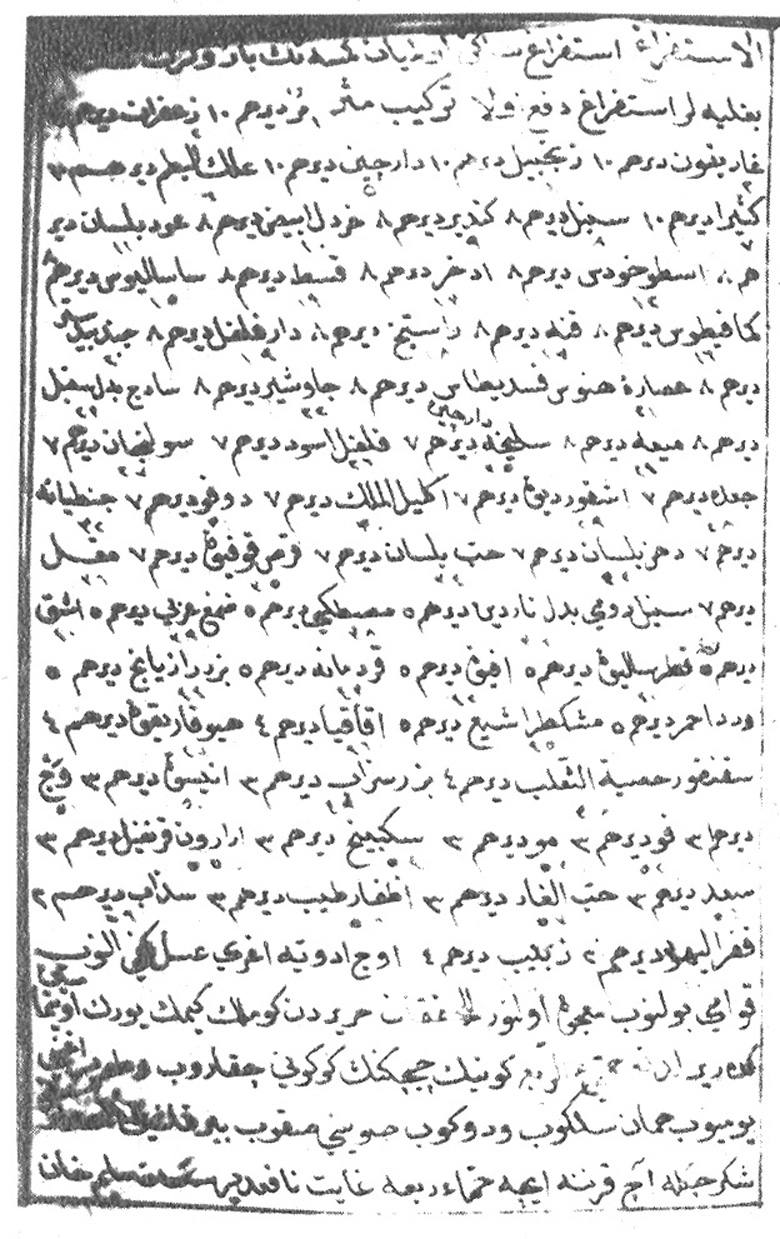 Eski bir dergide yer alan 61 maddeden oluşan bir mesir formülü.